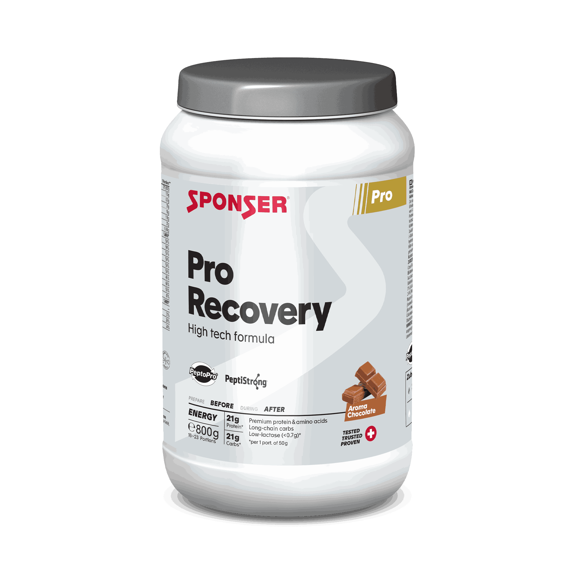 PRO RECOVERY je karbohydrátovo -proteínový prípravok pre vytrvalostných a aj silových športovcov. Jedinečná kombinácia proteínových zložiek srvátky, vajec a kazeínu v pomere 1: 1: 1, ako aj kolostrum a zemiaky + vaječné bielkoviny tvoria optimálnu zmes proteínov pre rast a udržanie svalovej hmoty. Obohatené s aminokyselinami L-leucín, L-glutamín a L-arginín.